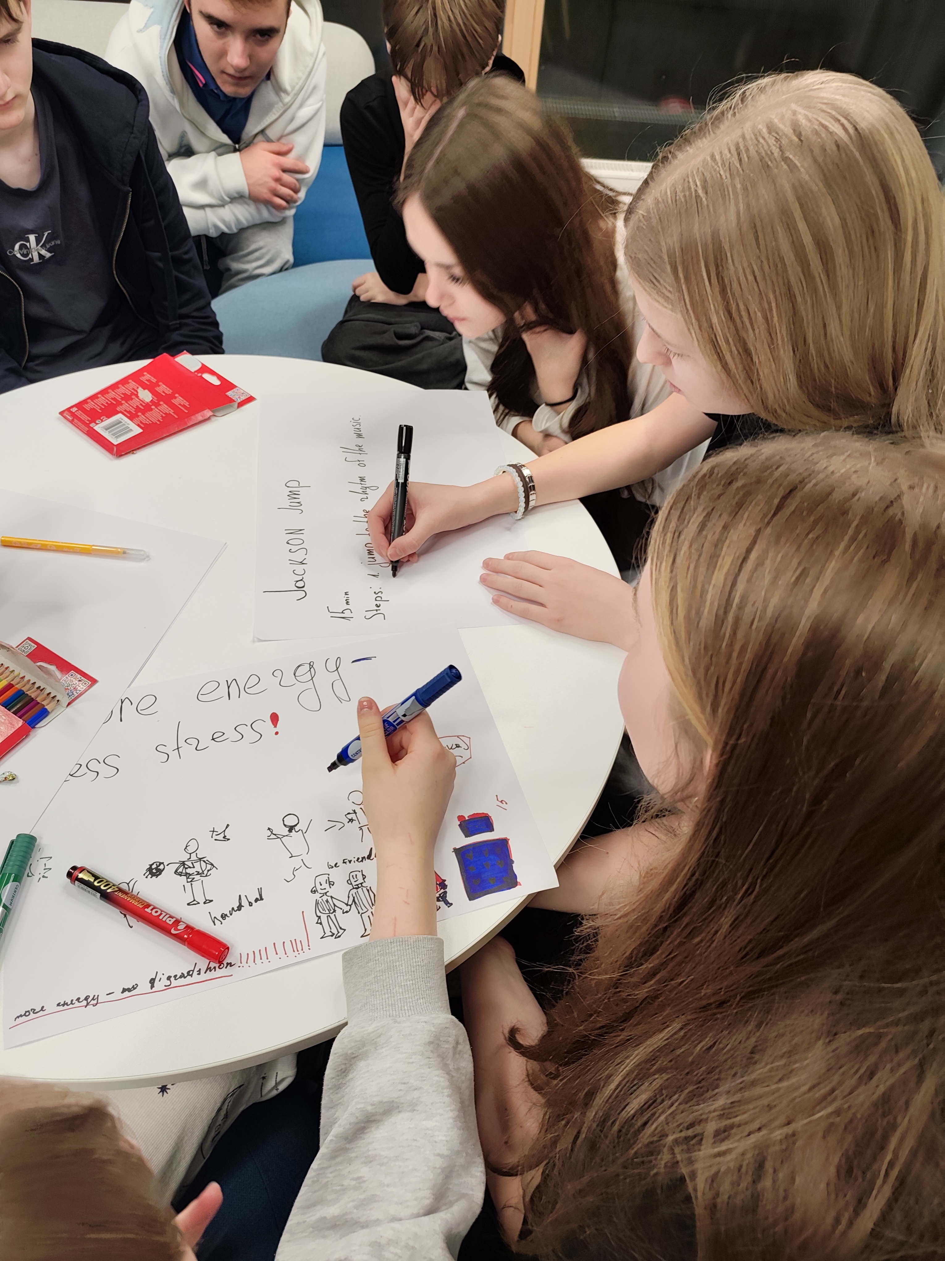 Projektiga seotud tegevused jätkusid ka pärast kohtumist. Jaanuaris ja veebruaris viisid osalejad läbi küsitluse meie kooli õpilaste seas, et selgitada välja nende arvamus vahetundide ja kehalise aktiivsuse kohta. Saadud tulemuste põhjal korraldasid nad aktiivseid vahetunde energizer’itega. Nende eesmärk oli suunata õpilasi telefonidest eemale, muuta vahetunnid liikuvamaks ning tõsta õpilaste kehalist aktiivsust.