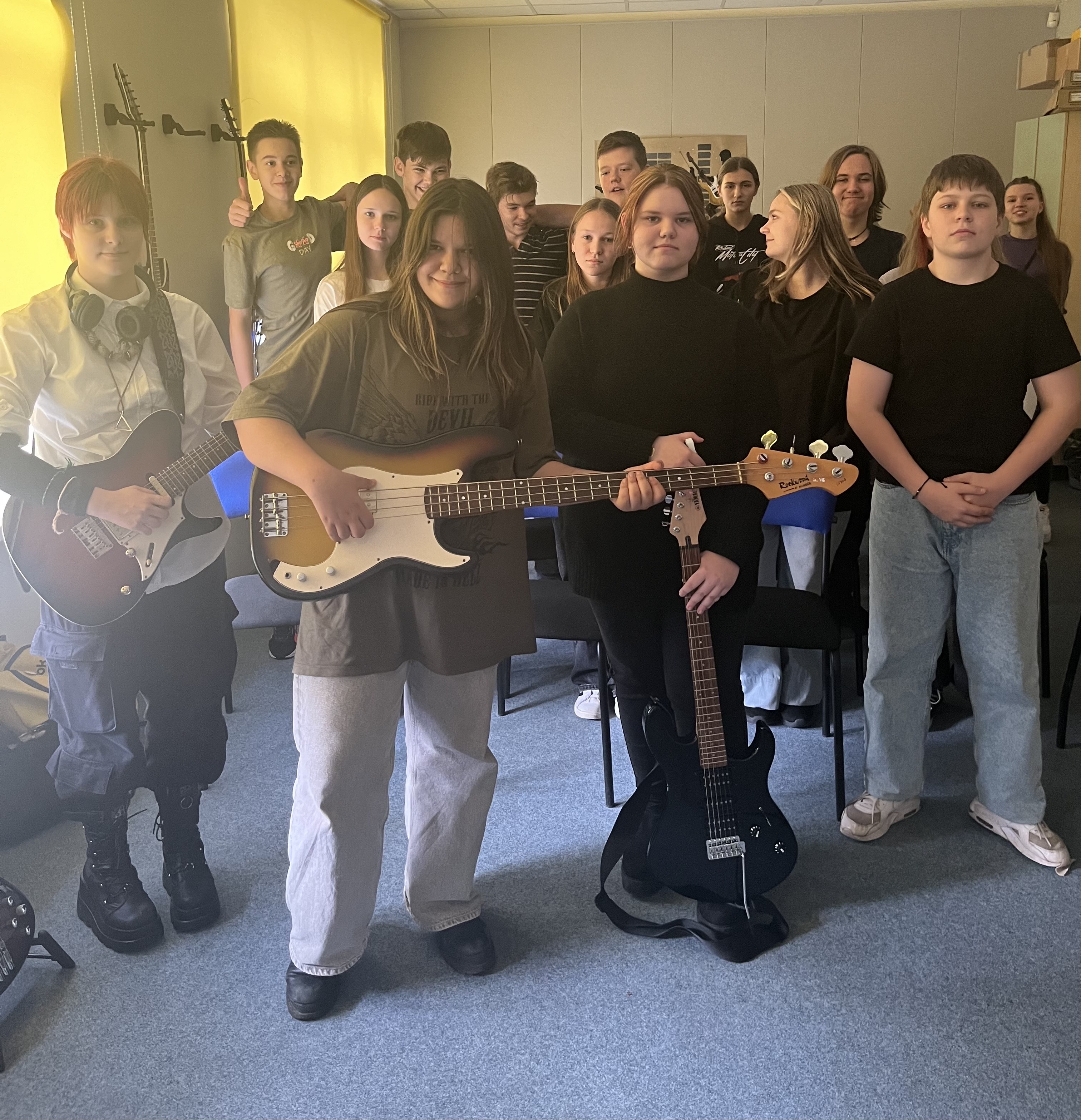 Kohtla-Järve Kesklinna Põhikooli 8a klaasi õpilased koos muusikaõpetajaga Svetlana