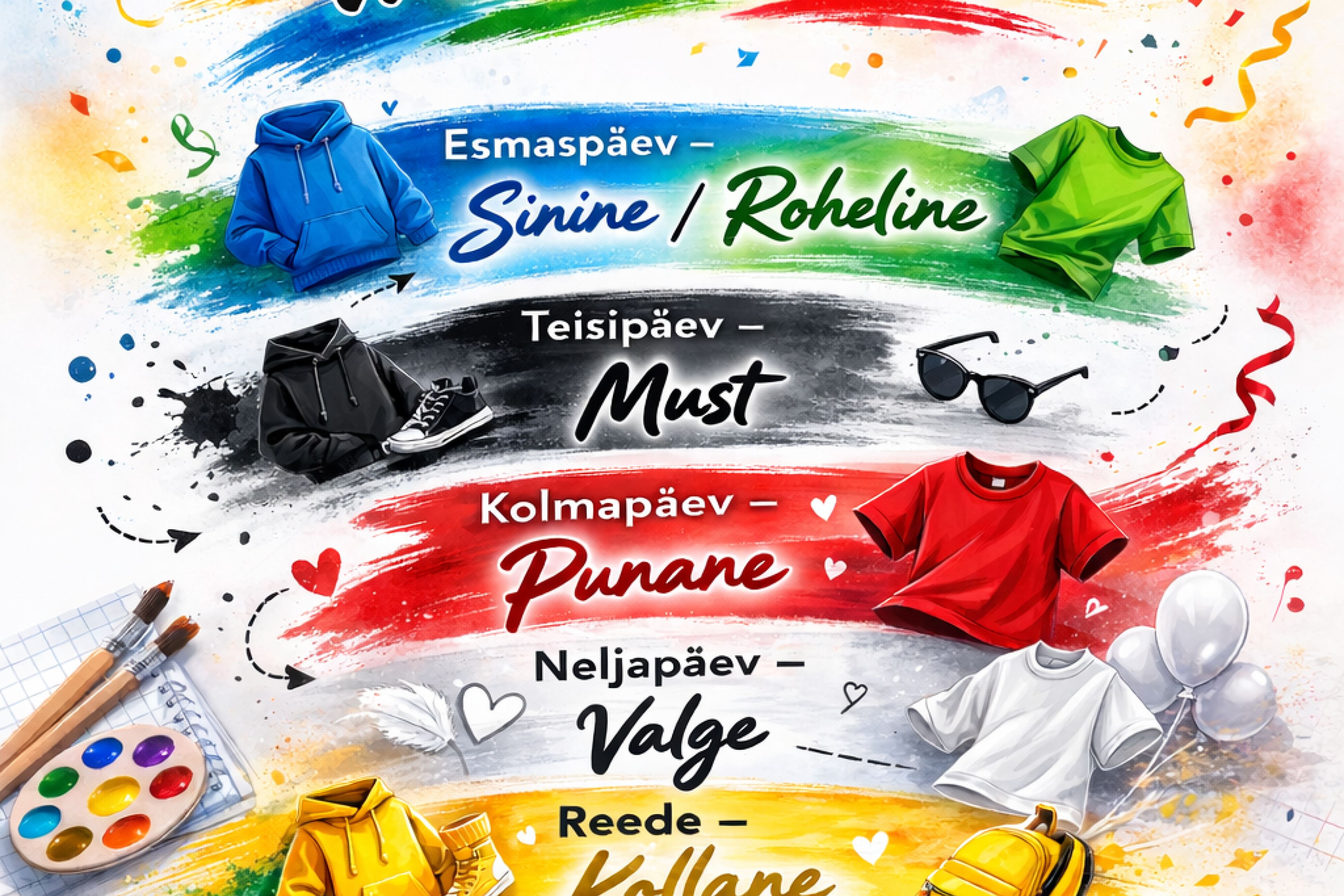 Meie koolis toimus värvinädal, mille raames panid õpilased iga päev selga kindlat värvi riideid.