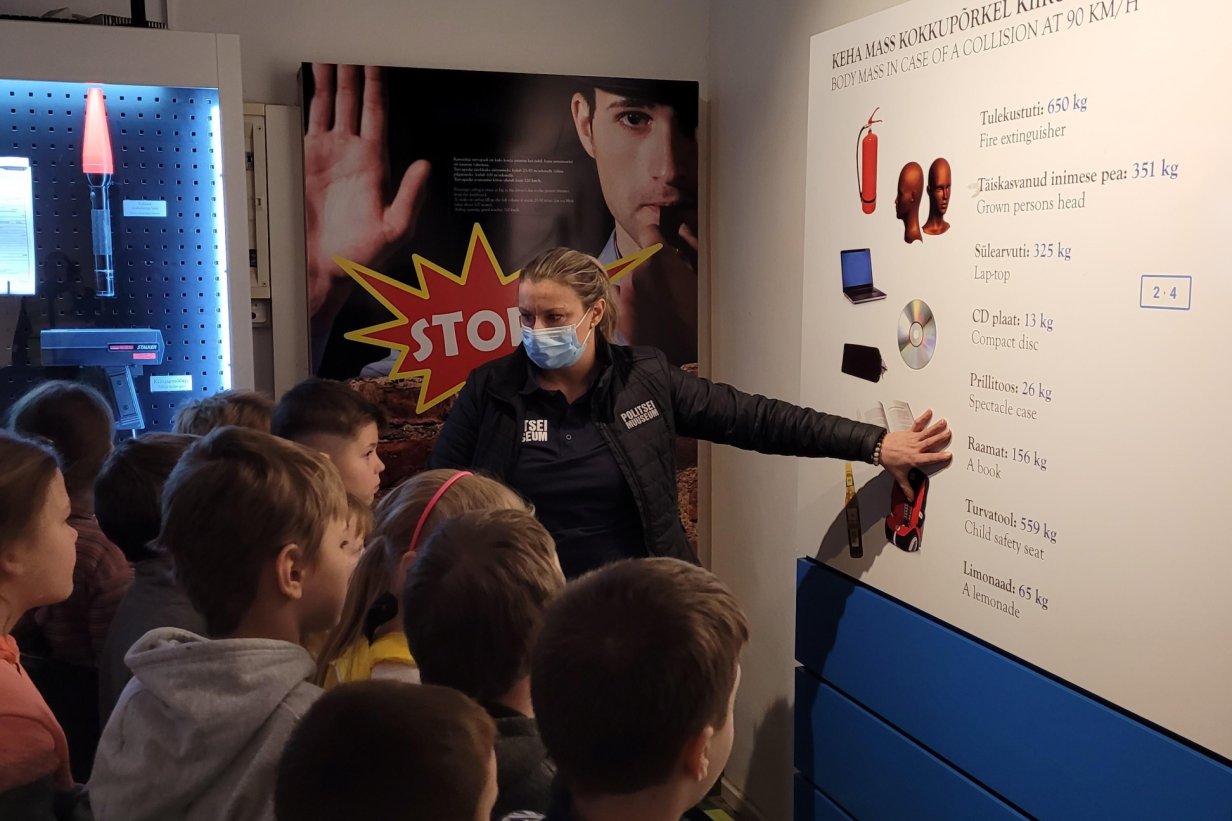 Ребята смогли измерить свою реакцию за рулем автомобиля, примерить полицейское снаряжение, снять отпечатки пальцев, перевоплотиться в спецназовцев. Поскольку почти весь материал в музее представлен на эстонском языке, у ребят была хорошая возможность потренироваться в чтении и переводе текстов.