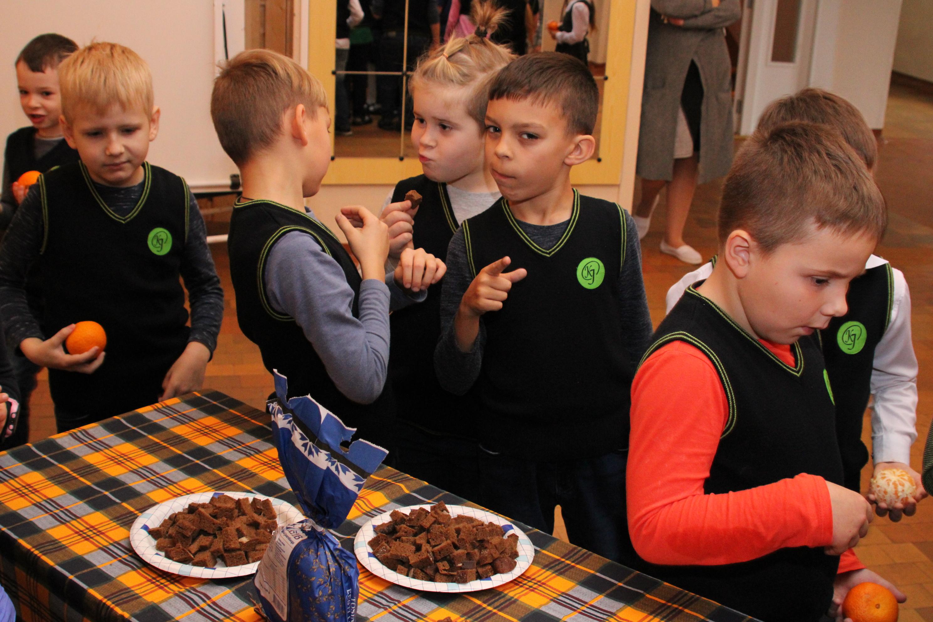 Главными и яркими участниками Недели Хлеба стала фирма Nata katab OÜ Натальи и Андрея Доможиловых, которые любезно предоставили нам свою продукцию и на открытие надели испекли каравай и вкусный шоколадный крендель. В течение всей недели они организовывали выпечку хлеба – домашнего, ароматного, с хрустящей корочкой! Ах, какой же аромат стоял в фойе! Дети были счастливы! Также участниками недели были такие фирмы как Eesti Leivatööstus, Leibur и Mantinga. Последняя фирма покорила учеников своим свежевыпеченным хлебом чиабатта с нежнейшим мякишем и превосходной корочкой.