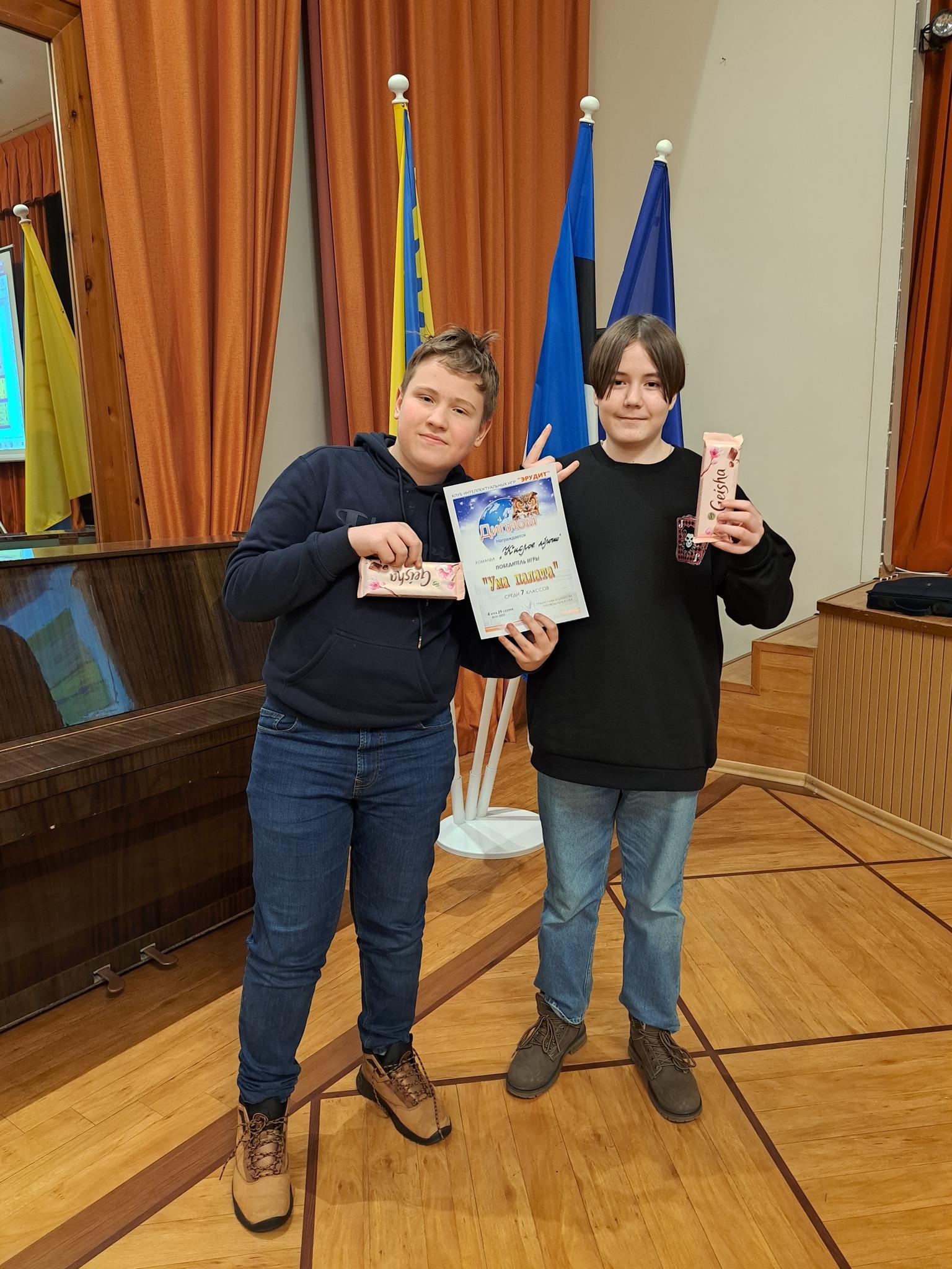 Среди седьмых классов победила йыхвиская команда «Кислое яблочко», и всего на 1 балл отстала от них команда «Олеле» из Кесклиннаской основной школы, довольствовавшись в результате вторым местом.