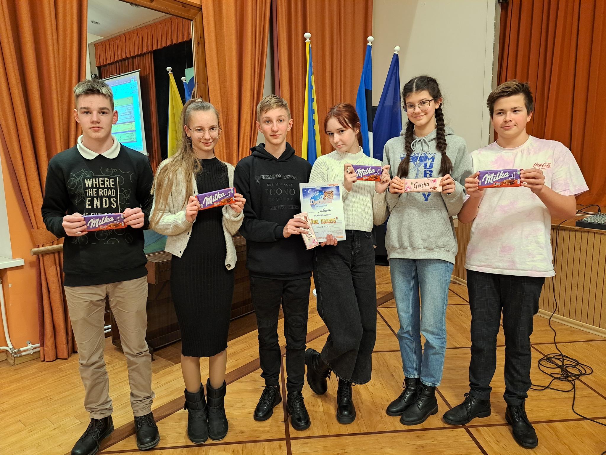 Всего на 3 балла от лучшей команды 8-классников отстала команда шестиклассников «Золотая середина» из Кесклиннаской основной школы, они и победили в этой возрастной категории. У трех оставшихся команд 6-классников разница результатов составляла всего по одному баллу. Но тем не менее, на второй строчке расположилась команда «Гульки из Кесклинна» (Кесклиннаская основная школа), а третье место досталось команде «Васильки» из Русской основной школы города Кивиыли.