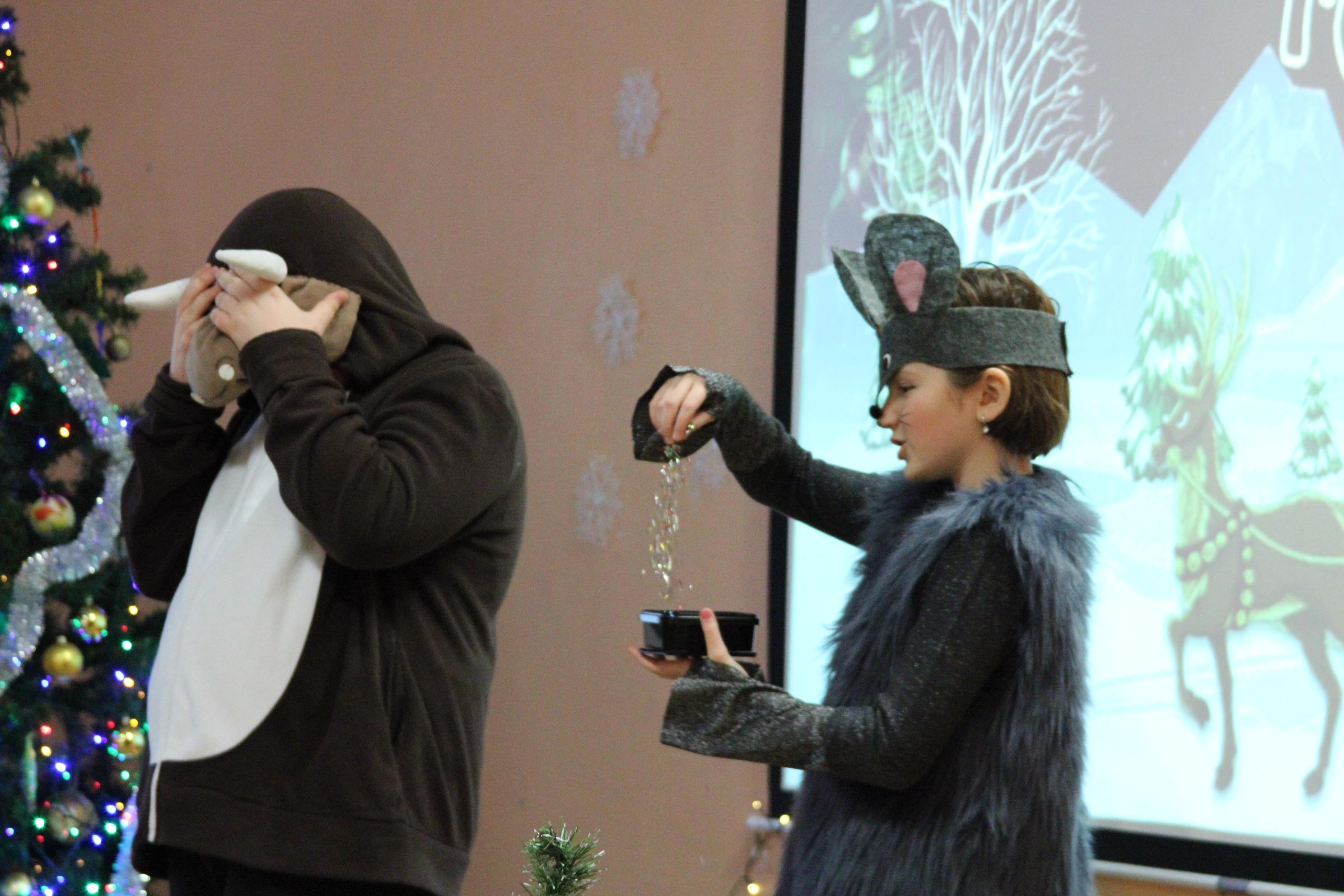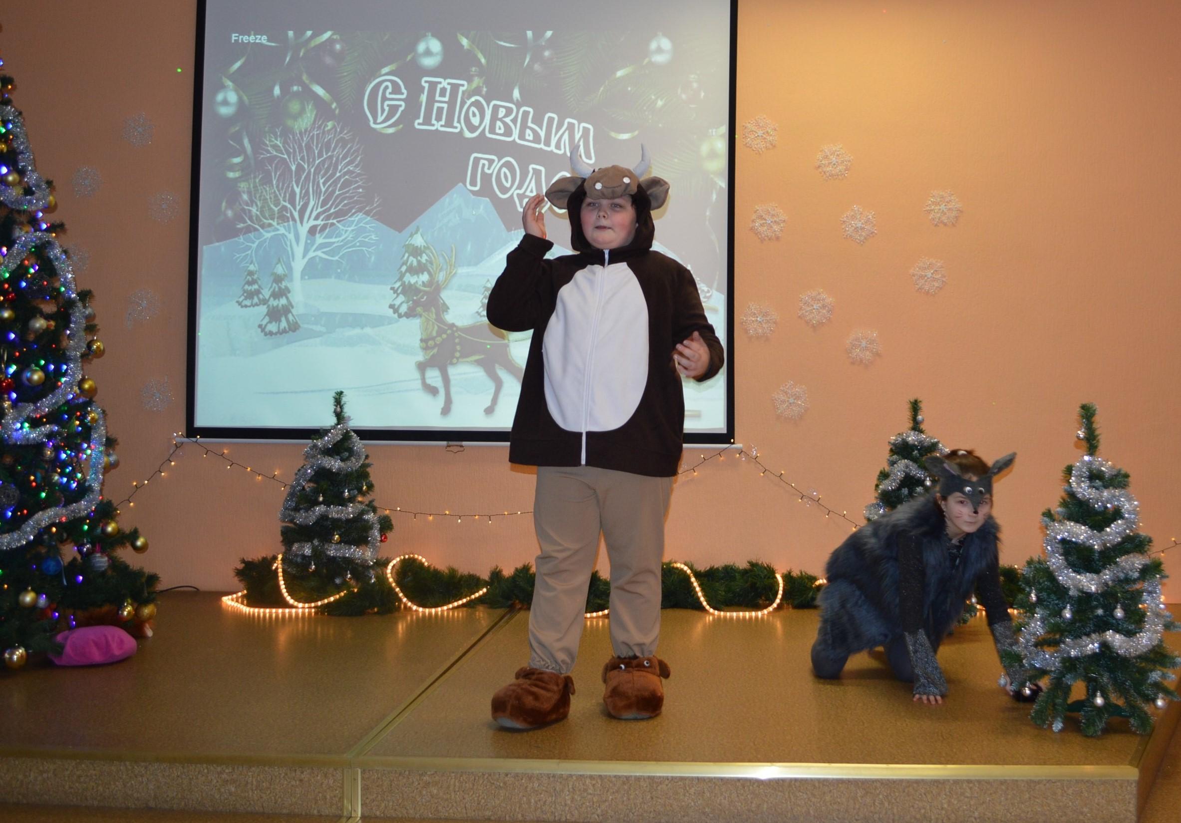 По сложившейся доброй традиции в нашей школе, из года в год, проходят новогодние представления не только для учеников начальной школы, но и для будущих первоклассников. В этом году артистами драматического кружка и преподавателями нашей школы было показано музыкальное интерактивное представление «Спортивный Новый год». Баба Яга (учитель эстонского языка Рийна Казаченко) из вредного персонажа перевоплотилась в спортивную, добрую и ведущую правильный образ жизни даму. Жизнерадостный Бычок - символ наступившего года (Артем Богданов) был подвергнут колдовству ленивой, не желающей отдавать свои полномочия Мышки Лу-Лу (Софии Кондрашовой). Но ответственный и оптимистичный Снеговик Бом (Александр Гатилов) не позволил испортить праздник и помог зрителям встретиться с долгожданным Дедом Морозом (преподавателем физического воспитания Вячеславом Шавкуном). В ходе представления зрители активно принимали участие и ярко реагировали на проделки сказочных героев. Участвовали в играх, исполняли песни, танцевали, рассказывали стихи. В зале было шумно и весело, звучал смех, витало ожидание чуда. У зрителей было праздничное настроение! И, конечно же, Дед Мороз каждому вручил долгожданный сладкий подарок.